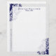 Elegant White & Navy Blue Floral Lace Personalized Letterhead