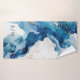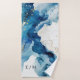 Modern stylish white bath towels blue watercolor with white dust on with a gold ink pour effect (the gold is a digital effect, not real foil).