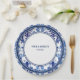 Elegant White Navy Floral Damask Wedding Dinner Paper Plate