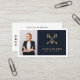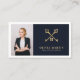 Modern, elegant and professional real estate agent business card with a photo placeholder that reflects your personality and make a great first impression. Design features your name in bold handwritten lettering, logo and title in block lettering on a navy & white background. Personalise further with your contact details, qr code and social media on the back.