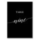 This elegant white on black calligraphy table nine table number is perfect for a simple wedding. The neutral design features a minimalist card decorated with romantic and whimsical typography. The card prints on the front and back (double-sided). Other table numbers in the collection are sold separately.