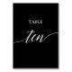 This elegant white on black calligraphy table ten table number is perfect for a simple wedding. The neutral design features a minimalist card decorated with romantic and whimsical typography. The card prints on the front and back (double-sided). Other table numbers in the collection are sold separately.