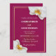 Invite your loved ones to celebrate your special day with this sophisticated and vibrant magenta wedding invitation. This design features a rich, deep berry-toned background that provides a stunning contrast to the crisp, white orchid blossoms that frame the corners. A delicate metallic-look gold border adds a touch of luxury and refinement to the overall presentation.