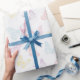 Elegant White Pastel Pink Blue Butterfly Pattern Wrapping Paper
