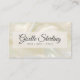 A sophisticated and modern business card featuring a luminous white pearl opal background, contrasted with deep charcoal text and icons for a timeless luxury look. Designed with a QR code and social icons, it's perfect for beauty, bridal, or upscale wellness professionals.