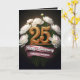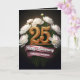 Celebrate a monumental love with this exquisite 25th Wedding Anniversary Card! Glistening golden '25' numerals take centre stage, elegantly surrounded by a delicate bouquet of pure white peonies – a timeless symbol of enduring love. A graceful pink banner unfurls below, ready for your personalised "Happy Anniversary" message and the special couple's names, all set against a sophisticated dark background. This card is a beautiful, visual tribute to a quarter-century of cherished memories.