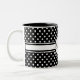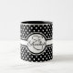 Elegant White Polka Dots on Black Monogram Two-Tone Coffee Mug