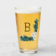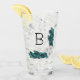 Elegant white ranunculus flowers and green foliage glass with monogram letter.