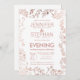 Elegant, modern, and chic faux rose gold and trendy white floral hand drawn pattern, evening wedding reception invitations. This classic and sophisticated design is perfect for the trendy and stylish marrying couple. Personalise with your own message on the front as well as a customised monogram initial on the back. All photo print design.