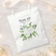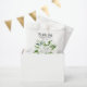 A wedding gift bag featuring elegant white roses and baby's breath flowers.