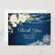 Elegant White Roses and Lace Rustic Wood Thank You Postcard.