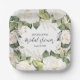 Elegant White Roses Bridal Shower Square Paper Plate