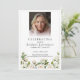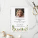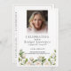The front features a portrait photo with white blurring at the bottom, while the back includes space for the obituary, order of service, and a customizable section for a poem, prayer, or acknowledgment.