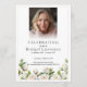 A beautiful and elegant two sided funeral program adorned with simple elegant white roses.