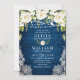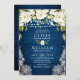 Elegant White Roses Lace Rustic Blue Wood Wedding Invitation