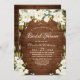 Elegant White Roses Rustic Wood Bridal Shower Invitation