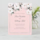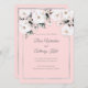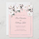 Delicate white roses arrangement on the top this elegant soft pink background wedding invitation. Silver frame nestling the wedding invitation details in grey typography.