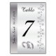 Table Number Cards. Elegant White Satin and Silver. ⭐DIRECTIONS TO ADD NAMES/NUMBERS TO CARDS - Step 1 (Click on Personalise this template) add name and /or number on first card then add it to your cart. Step 2 - click on "continue shopping" and it will return you back to the card so you can add the second number and / or name(s) then add it to your cart - Repeat process until all names and/or numbers have been added. Step 3 - Checkout or continue shopping. ⭐This Product is 100% Customisable. Graphics and / or text can be added, deleted, moved, resized, changed around, rotated, etc... 99% of my designs in my store are done in layers. This makes it easy for you to resize and move the graphics and text around so that it will fit each product perfectly. You can also "TRANSFER DESIGN" on other Zazzle products and adjust the design to fit most of Zazzle items. (button is down on the right side of the page) Some of the text graphics have ready to fill in the box(es) or you can Click on the CUSTOMIZE button to add, move, delete, resize or change any of the font or graphics. The design is made with high resolution vector and/or digital graphics for a professional print. ⭐NOTE: (THIS IS A PRINT. All zazzle product designs are "prints" unless otherwise stated under "About This Product" area) The design will be printed EXACTLY like you see it on the screen and on the product...so please make sure when you do your changes on the resizing of any of the graphics or text that it fits in the areas correctly and that your spelling and wording is how you like it to be in size, colour and font. If you have any questions about the "DESIGN" or need help please contact me at siggyscott@comcast.net or visit my store link: http://www.zazzle.com/designsbydonnasiggy?rf=238713599140281212 (Copy and Paste) I'll be happy to help. ⭐ All other questions (shipping, refund, the printing, the product, etc...) please contact Zazzle or the Maker ⭐DIRECTLY⭐. Thank you for the support and stopping by my store - DesignsbyDonnaSiggy. © Donna Siegrist