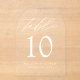 Add a modern touch to your wedding reception with our Elegant White Script Acrylic Arch Wedding Table Number Cards. These stylish cards feature white lettering in sleek, modern typography, with “Table” in an elegant calligraphy script. Available in an arched or rectangular design, each card is crafted on a frosted or transparent acrylic background, adding a touch of sophistication to your decor. Personalise with your names, wedding date, and table number for a custom look that perfectly complements minimalist and contemporary wedding themes. To order, add each table number individually to your cart and check out when you're finished.
