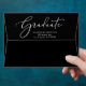 An elegant black envelope to elevate your graduation announcements, party invitations and thank you cards featuring "Graduate" in a chic white script and the grad's name and return address in simple modern white typography.