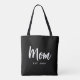 Elegant White Script Established New Mum Black Tote Bag... Are you a new mother yourself or are you looking for a thoughtful Christmas gift idea for a new mum? Here is a fun customised white on black tote bag spelling out "Mum" in elegant white script typography with classic serif text just underneath displaying "Est. 2025" as the birth year. All example text can be easily revised on the personalisation template.