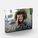 Elegant acrylic photo block graduation keepsake featuring your favourite photo, your name, Class of and Graduate in chic white lettering. Perfect for yourself or as a gift to parents and grandparents.