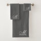Elegant White Script Initial Monogram Grey Bath Towel Set