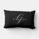 Elegant White Script Monogram & Grey Name on Black Lumbar Cushion