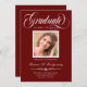 Announce your college graduation to your family and friends in style with this elegant custom photo announcement card. This modern design template features elegant white calligraphy script that reads "Graduate Class of 20XX" with your name, college, degree and date to personalise on a red maroon background. Congratulations on your graduation! Designed by Susan Coffey.