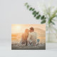 This elegant wedding photo save the date postcard features a modern design template with your photo and an overlay of white script that reads "Save the Date" and your names to personalise. On the back of the postcard is more details of your wedding day to customise with a faded photo in the background. Best of wishes for your engagement and wedding! Designed by Susan Coffey.