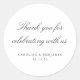 Stylish Formal Classic Traditional Script Elegant Wedding Invitation Custom Thank You Classic Round Sticker in White with Black Typography