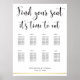 Elegant white Wedding Seating Chart Find your seat It's time to eat with gold foil effect (faux, printed as an image) and changeable text - you can add Bride's and Groom's name, Wedding date and Guest's names (8 tables with 8 guests each).