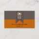A velvety mocha brown and bold pumpkin coloured stripe background adorned with a white knife, spoon and fork logo. Perfect business card for an executive chef, personal chef, caterer, restaurant or other food service company.