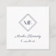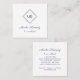 Elegant White Slate Grey Script Diamond Monogram Square Business Card