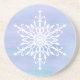 Deck the halls with this elegant coaster featuring a unique white snowflake over a soft artistic background of teal, blue and purple.