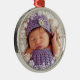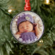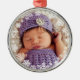 Snowflake framed photo ornament design features a round wreath of elegant white winter snowflakes that frame the photo as an overlay design.