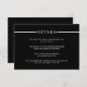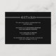 Enhance your wedding stationery with our sophisticated initial and white stripe minimalist enclosure card. This elegant design features a sleek white horizontal stripe adorned with two delicate hearts and the word "DETAILS" elegantly placed on a chic black background. On the back, guests will find a convenient QR code that allows them to easily access additional information about your special day. Make a lasting impression with this modern and stylish addition to your wedding suite.