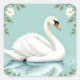 Elegant white swan floral blue square sticker