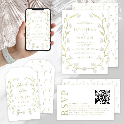 Elegant White Tulips Floral Wreath Summer Wedding Invitation