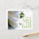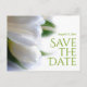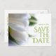 Elegant Save the Date postcard. A white tulips photography on the background, gives it an original and unique touch.