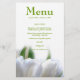 Elegant floral menu card, with a white tulips photo as background. A great choice for any white or winter events like weddings, bridal or baby showers. Also, a very beautiful and original option for businesses like hotels or restaurants. Available in several paper types, including a recycled one for an eco friendly alternative. Additional text is printed on back to accommodate your needs.