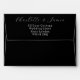 The bride and grooms names and return address are shown in elegant script on these elegant black wedding invitation envelopes. To edit the text click on the personalise button.