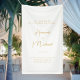 Elegant, white, "Welcome to our wedding" banner with space for personal words or a quote. This exquisite piece is designed to complement the ambience of your special day with its timeless elegance. The names are written in an elegant, vibrant manuscript. The simple design of the hotel blends with many different wedding styles, such as rustic, minimal, modern or Boho style and more. Edit your banner with your name and your wedding date. Below is space for a personal quote that matches them and their celebration. Whether at the entrance of your venue or as the center of the square of your wedding ceremony, it is inviting and makes you want to celebrate.