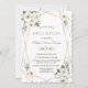 Charming card design featuring watercolour delicate white cream flowers, airy green and gold leaves, a faux gold frame, floral divider, on a white background. Use Personalise tool to add your info. For matching items, please, visit my Delicate White Flowers Collection.
