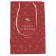 Elegant White Winter Leaves Mistletoe Red Medium Gift Bag