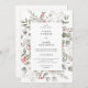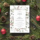 This elegant and festive wedding invitation features a beautiful watercolor frame of holly, eucalyptus, and berries over a classic white background. The typography is classic and timeless. This is the perfect invitation for an elegant winter wedding! See the collection for coordinating items.