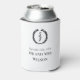 Elegant White with Black Monogram Wreath Can Cooler