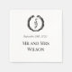 Surrounding the monogram is a delicate wreath, adorned with lush foliage and intricate details. This leaf crest wreath adds a touch of natural beauty and organic charm to the design, enhancing the overall aesthetic of the napkin and tying it seamlessly into your wedding theme.