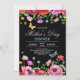 Elegant Spring Wildflower Chic Mother's Day Dinner Invitation. Beautiful celebration with mother with flowers of pink and red, butterflies and dragonflies. Personalise this template with your information. Black-coloured background on the front and pink on the back. The colour is customisable.