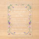 Celebrate your special day with the timeless beauty of our Elegant Wildflower Clear Acrylic Wedding Invitation. Featuring a delicate border of hand-painted wildflowers in soft pinks, purples, and greens, this transparent invitation offers a unique and sophisticated way to invite your guests. Perfect for garden weddings, spring celebrations, or romantic outdoor ceremonies, this design blends modern elegance with natural charm. Customise with your personal details to create a keepsake that will be cherished forever.